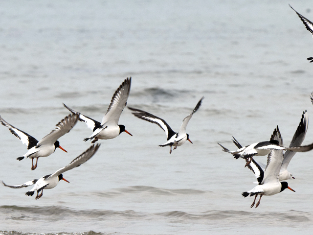 ミヤコドリはとても目立つ白と黒の大型の水鳥で、海岸や河口に飛来し、オレンジ色のくちばしを上手に使い二枚貝を食べます。この種はヨーロッパからアジアまで広く分布しますが、日本に飛来するミヤコドリは東アジア飛行ルートに属し、このルートには約10,000羽が生息すると考えられています。日本では毎年400羽から600羽が観察されています。
