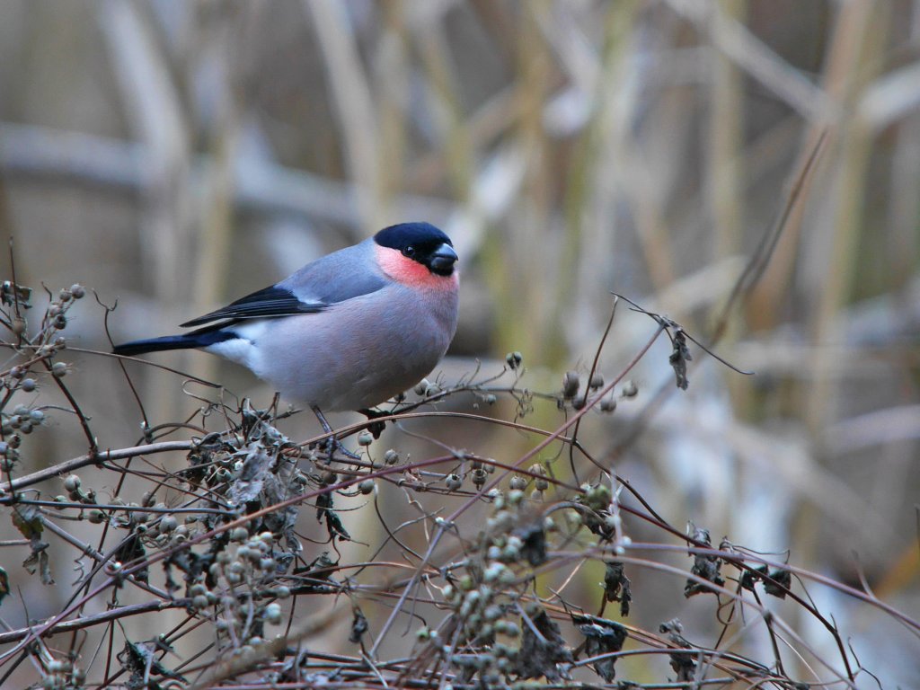 ■コメント:ウソが桜の花芽をガツガツ食べています。 空抜けの高い枝に10羽位の群で居ましたが、数羽が下の方に降りてくれました。