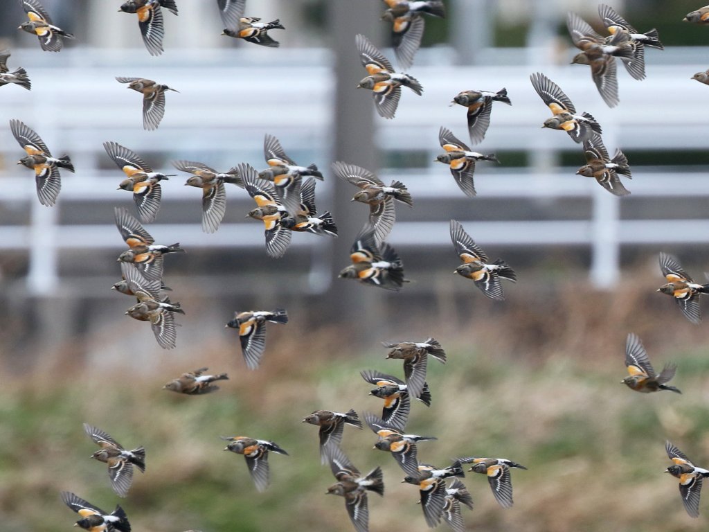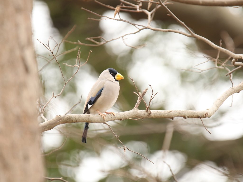 ■コメント:今期は最大で100羽程のイカルの群れが来ています。このときは目線の先にイカルが10羽程とまっていて黄色い嘴が花のように見えていました。