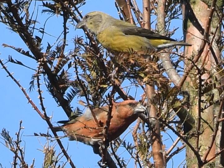 ■コメント: 去年からたくさん観られているイスカですが、また別の場所にも現れて、楽しませてくれています。噛み合わせの悪そうなくちばしで松ぼっくりを器用にほじくって食べます。