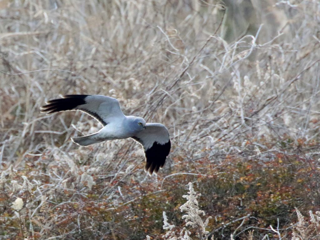 ■コメント:木々の間から急に小鳥が逃げ出してきたので、カメラを構えて注目していたらハイイロチュウヒ♂が現れました。