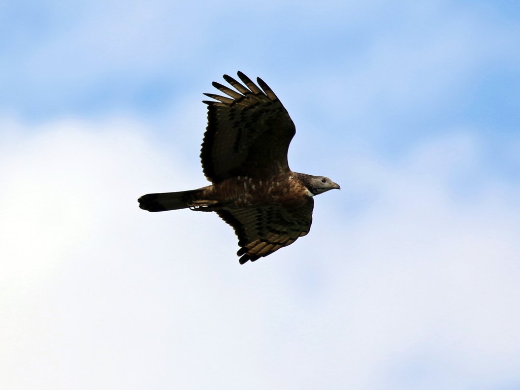 ■コメント:多度山の探鳥会は曇っていたためタカは一羽も飛びませんでしたが、翌日から天候が回復し多くのタカの渡りが観察でき、おかげで目の前をハチクマが通過しました。
