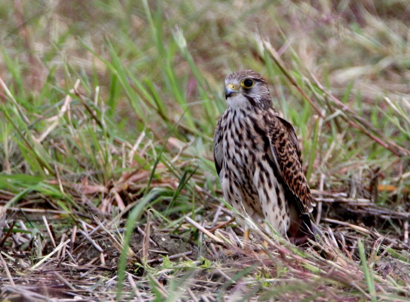 ■コメント:刈り取りをおえた田んぼで、車窓からかわいい雌のコチヨウゲンボウを発見、1枚拝借しました。
