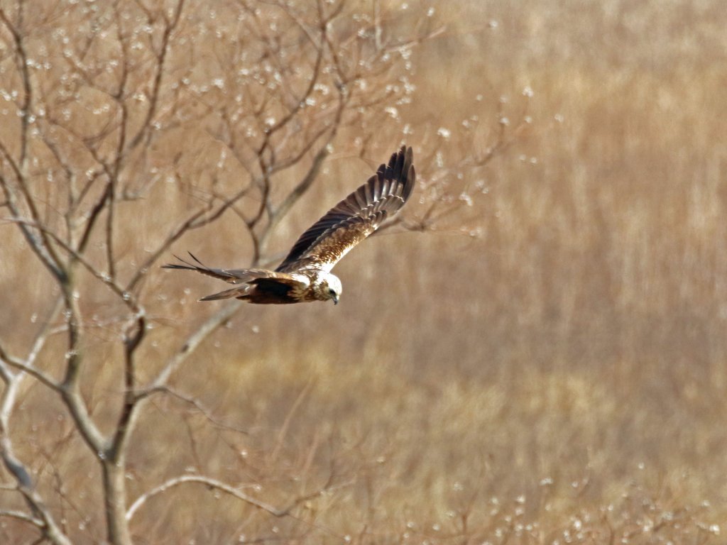 ■コメント:木曽岬干拓地を飛翔するチュウヒ。8月29日に希少種に指定され保護の対象になりましたが、木曽岬干拓地の開発再開の動きがあるため繁殖地は危機にさらされています。